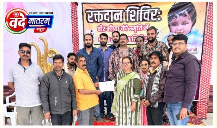 रतलाम, वंदेमातरम् न्यूज। रतलाम शहर में एक परिवार ने अपने मासूम बच्चे वीर की स्मृति में रक्तदान शिविर आयोजित कर समाज को प्रेरणा दी है। मंगलवार को परिवार के आह्वान पर मिडटाउन नवयुवक मंडल के माध्यम से रक्तदान शिविर आयोजित हुआ। मंडल के सदस्यों के आह्वान पर 87 रक्तदाताओं ने पहुंचकर रक्तदान कर वीर को सच्ची श्रद्धांजलि अर्पित की। इस दौरान रक्तदाताओं को सर्टिफिकेट प्रदान कर उन्हें सम्मानित भी किया।