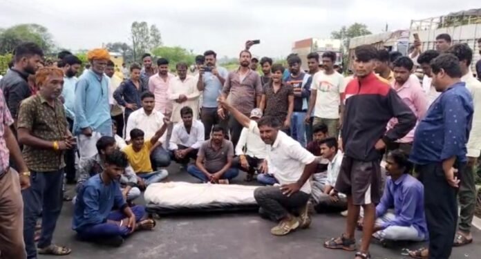 फोटो – फोरलेन पर शव रख प्रदर्शन करते ग्रामीण।