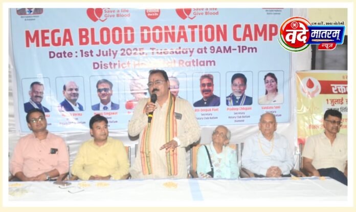 रतलाम, वंदेमातरम् न्यूज। डॉक्टर्स डे के अवसर पर जिला चिकित्सालय परिसर में रोटरी क्लब, मेडिकल ऑफिसर्स एसोसिएशन और मेडिकल रिप्रेजेंटेटिव संघ के संयुक्त तत्वावधान में भव्य रक्तदान शिविर का आयोजन किया गया। शिविर में 87 रक्तवीरों ने उत्साहपूर्वक रक्तदान किया।