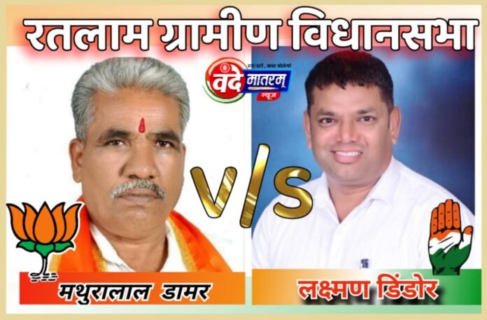 विधानसभा चुनाव 2023 का शोर थम चुका है। डोर टू डोर मेल-मुलाकात का दौर जारी है। रतलाम जिले की पाचों विधानसभा में खास नजर रतलाम ग्रामीण, सैलाना, जावरा एवं आलोट पर टिकी है। इन विधानसभाओं में त्रिकोणीय मुकाबला होने जा रहा है। जबकि रतलाम में सीधी टक्कर है। रतलाम ग्रामीण की बात करें तो भाजपा ने वर्तमान विधायक दिलीप मकवाना का टिकट काट कर 6ठीं पास 68 साल के पूर्व विधायक मथुरालाल डामर को मैदान में उतारा है। वहीं कांग्रेस ने बीएससी (ग्रेज्युट) पास 46 साल के युवा चेहरे लक्ष्मणसिंह डिंडोर को टिकट दिया है। इन दोनों में कड़ा मुकाबला है। दोनों पार्टी के नेता अपने-अपने उम्मीद्वार को जिताने में जी-जान से जुटे हैं।