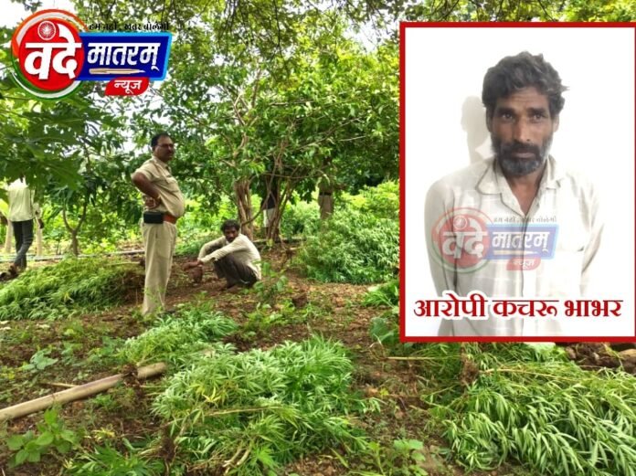 जिले के रावटी थाना क्षेत्र में पुलिस ने दबिश देकर गांजे की अवैध खेती का पर्दाफाश किया। आरोपी ने कपास के खेत की आड़ में गांजे के पौधों को बड़ी मात्रा में बो रखा था। पुलिस ने खेत में दबिश देकर मौके से अवैध मादक पदार्थ गांजे के 318 हरे पौधे जप्त किये। जिनका वजन करीब 174 किलो व कीमत करीब 1लाख 91 हजार रुपए है। पुलिस के अनुसार शनिवार को मुखबीर की सुचना पर कचरू पिता धीरजी भाभर निवासी ग्राम सिंगत महुआ के खेत में दबिश दी गई। सूचना की तस्दीक करते हुए वरिष्ठ अधिकारियों के संज्ञान में लाकर टीम बनाई गई। जिसके बाद टीम द्वारा घेराबंदी कर आरोपी युवक कचरू (45) पिता धीरजी भाभर निवासी ग्राम सिंगत महुआ (रावटी) को हिरासत में लेकर पूछताछ की गई।