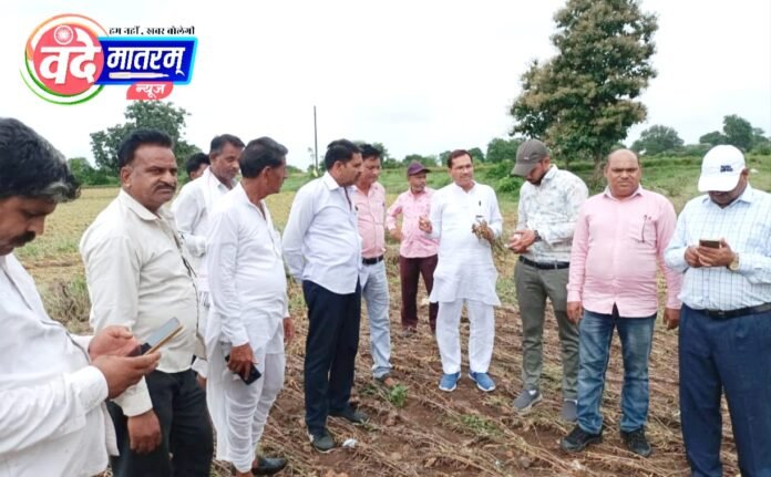 गत दिनों में हुई तेज बारिश के चलते रतलाम ग्रामीण विधानसभा अंतर्गत ग्राम पंचायत पीपलखुंटा अंतर्गत खारी गांव में नाले के पानी से बर्बाद हुई फसलों के हाल जानने के लिए विधायक दिलीप मकवाना अधिकारियों को मौके पर लेकर पहुंचे। वस्तु स्थिति का जायजा लेते हुए विधायक मकवाना ने संबंधित अधिकारियों को निर्देशित किया कि राजस्व, कृषि विभाग और पंचायत सचिव की संयुक्त टीम गठित कर खारी, छत्री सहित पूरे विधानसभा क्षेत्र में नुकसानी का सर्वे किया जाए।