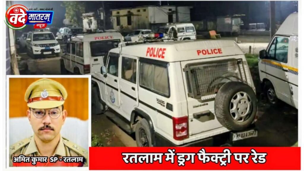 रतलाम, वंदेमातरम् न्यूज। मध्य प्रदेश के रतलाम (Ratlam) जिला पुलिस ने नशे के कारोबार पर बड़ी कार्रवाई करते हुए एमडी ड्रग बनाने की अवैध फैक्ट्री (Drug factory) का पर्दाफाश किया है। कालूखेड़ा थाना क्षेत्र के चिकलाना गांव में गुरुवार देर रात करीब ढाई बजे की गई इस कार्रवाई में पुलिस ने 10 किलो से अधिक एमडी ड्रग, भारी मात्रा में रॉ मटेरियल और कई हथियार जब्त किए हैं। मौके से 16 लोगों को हिरासत में लिया गया है, जबकि जांच अभी जारी है।