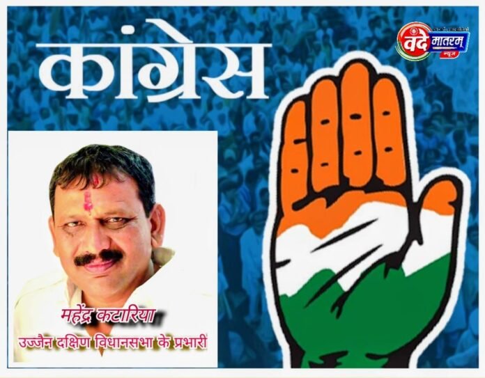 रतलाम, वंदेमातरम् न्यूज। मध्य प्रदेश कांग्रेस कमेटी ने रतलाम शहर कांग्रेस कमेटी के पूर्व अध्यक्ष महेंद्र कटारिया को उज्जैन दक्षिण विधानसभा का प्रभारी नियुक्त किया है। उन्हें यह जिम्मेदारी प्रदेश कांग्रेस अध्यक्ष जीतू पटवारी ने “वोट चोर गद्दी छोड़” हस्ताक्षर अभियान एवं मतदाता सूची गहन परीक्षण अभियान के तहत सौंपी है।