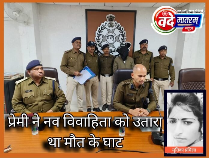 रतलाम, वंदेमातरम् न्यूज। मध्य प्रदेश के रतलाम जिले के बाजना थाना अंतर्गत ग्राम इमलीपाड़ाखुर्द के जंगल में सोमवार को नव विवाहिता के शव मिलने के बाद में जांच में हत्या का खुलासा हुआ है। नव विवाहिता की हत्या उसके आशिक ने की थी। नवविवाहिता को पांच दिन पूर्व मायके जाने के लिए पति ने उसे बाजना में छोड़ा था। यहां से करीब तीन किलोमीटर दूर मृतिका का मायका ग्राम इमलीपाड़ाखुर्द में था। रास्ते में आरोपी आशिक उसे बाइक पर बैठाकर जंगल में ले गया था और वहां विवाद के बाद उसकी गला दबोचकर मौत के घाट उतार दिया था। महिला की मौत के बाद आरोपी ने उसके शरीर से चांदी के गहने भी लूट लिए थे।