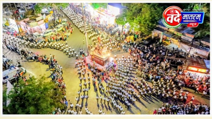रतलाम, वंदेमातरम् न्यूज। राष्ट्रीय स्वयंसेवक संघ (आरएसएस) के शताब्दी वर्ष के अवसर पर रविवार शाम रतलाम में एक ऐतिहासिक पथ संचलन का आयोजन हुआ। रतलाम के पांच अलग-अलग स्थानों से प्रारंभ हुए पथ संचलन का महासंगम सैलाना बस स्टैंड पर शाम 6:30 बजे हुआ। हजारों की संख्या में नागरिकों ने इस दृश्य को देखने के लिए सड़कों पर जुटकर स्वयंसेवकों पर फूलों की बरसात की। कई जगहों पर स्वागत के लिए सड़कों पर कालीन बिछाए गए और “जय जय श्री राम”, “वंदे मातरम्” के उद्घोष गूंजते रहे।