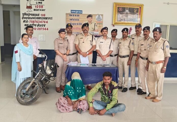 थाना दीनदयाल नगर क्षेत्र अंतर्गत पलसोड़ी के जंगल में मिली महिला की लाश के पीछे पुलिस ने हत्या का खुलासा किया। 14 जुलाई को अज्ञात महिला की लाश मिलने की सूचना पर एसपी सिद्धार्थ बहुगुणा ने खुद मौके पर पहुंच कर घटना स्थल का निरीक्षण किया था। जिसके बाद जांच टीम बनाकर पुलिस मृतिका की शिनाख्ती व आरोपियों की तलाश में जुट गई। हत्या के 8 दिन बाद शनिवार को प्रेस कांफ्रेंस में सीएसपी हेमंत चौहान ने पूरे मामले का खुलासा किया। पुलिस ने मामले में मृतिका की मुंह बोली बहन दल्लुबाई पति स्व. मनोहर उर्फ मीनु वर्तमान पति जगदीश डामर उम्र 32 वर्ष निवासी ग्राम परनाला थाना शिवगढ़ व जगदीश पिता भेरू डामर उम्र 30 वर्ष निवासी ग्राम सनावदा थाना स्टेशन रोड को गिरफ्तार किया। आरोपियों पर आईपीसी की धारा 302, 34 में मामला पंजीबद्ध कर विवेचना मे लिया गया।